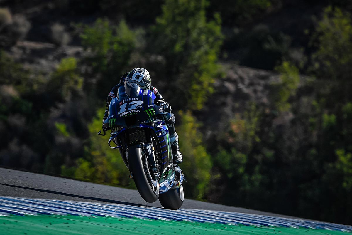 ทัพนักบิดยามาฮ่า ควบรถแข่ง YZR-M1 คว้าหัวแถวในการทดสอบอย่างเป็นทางการ ศึกโมโตจีพี 2020 ที่ เซอร์กิโต เดอ เฆเรซ-อังเคล นีอัตโต้ จากผลงานของ มาเวริค บีญาเลส #12 ดาวบิดสแปนิช สังกัดมอนสเตอร์ เอเนอร์จี้ ยามาฮ่า โมโตจีพี ที่บิดทำเวลาต่อรอบได้เร็วที่สุด ตามด้วย ฟาบิโอ กวาร์ตาราโร่ #20 ดาวรุ่งเฟรนช์แมน จาก ปิโตรนาส ยามาฮ่า เอสอาร์ที ที่รั้งจ่าฝูงในประเภททีมอิสระ