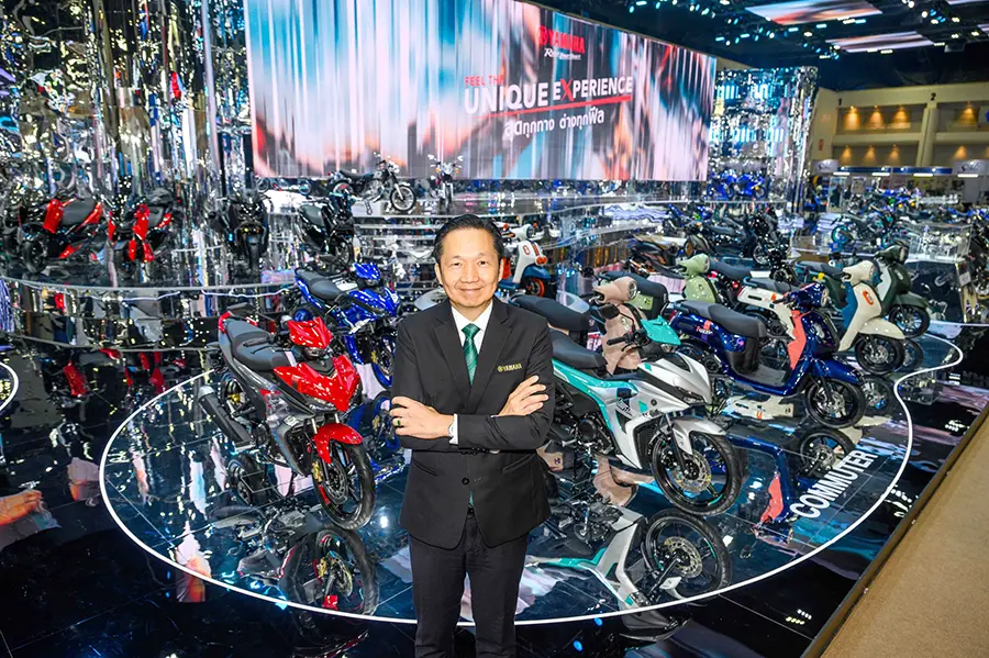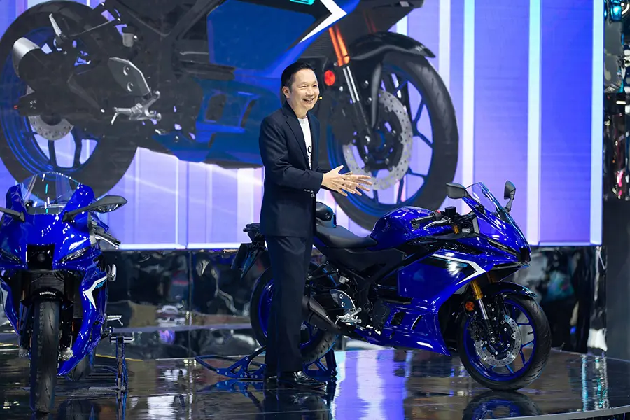 นายพงศธร เอื้อมงคลชัย ประธานกรรมการบริหาร พร้อมคณะผู้บริหาร บริษัท ไทยยามาฮ่ามอเตอร์ จำกัด ถ่ายภาพร่วมกันในพิธีเปิดบูธ YAMAHA “FEEL The Unique Experience” ในงาน บางกอก อินเตอร์เนชั่นแนล มอเตอร์โชว์ ครั้งที่ 46 อย่างเป็นทางการ โดยในปีนี้ ยามาฮ่าเปิด 2 โมเดลสายพันธุ์ R-Series รุ่นใหม่กับ New YAMAHA R9 รถมอเตอร์ไซค์ซูเปอร์สปอร์ตรุ่นใหม่ล่าสุดที่มาพร้อมกับขุมกำลังเครื่องยนต์ CP3 890 ซีซี และ New YAMAHA R3 สปอร์ตไบค์มิดเดิลคลาสกับขุมพลังเครื่องยนต์ 321 ซีซี พร้อมกันนี้ ยามาฮ่าเปิด New YAMAHA SR 400 กับตำนานของรถสปอร์ตเฮอริเทจ ที่คงความคลาสสิกตลอดกาล กับรุ่น Final Edition และ New YAMAHA R15 และ New YAMAHA EXCITER 2 รุ่นที่มาพร้อมกับสีสันใหม่ พร้อมโปรโมชันแบบจัดเต็มครบทุกเซกเมนต์ ตั้งแต่รถสแตนดาร์ดไบค์ถึงรถบิ๊กไบค์ รวมถึงผลิตภัณฑ์ยามาลู้ป เครื่องแต่งกายแท้ พร้อมอุปกรณ์ตกแต่งแท้จากยามาฮ่า ในงานบางกอก อินเตอร์เนชั่นแนล มอเตอร์โชว์ ครั้งที่ 46