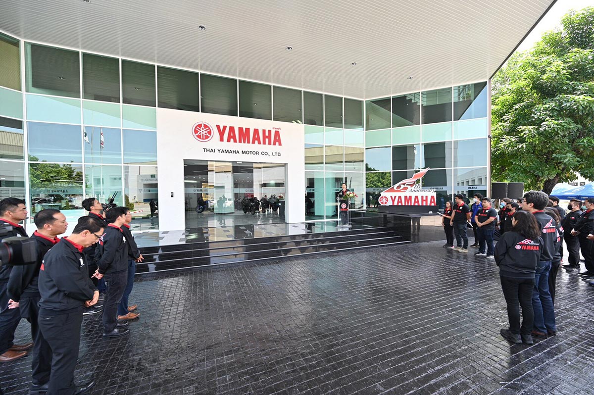 มร.เท็ตสึยะ โนซากิ ประธานกรรมการบริหาร พร้อมด้วย นายพงศธร เอื้อมงคลชัย รองประธานกรรมการบริหาร และคณะผู้บริหารระดับสูง บริษัท ไทยยามาฮ่ามอเตอร์ จำกัด ร่วมทำพิธีเปิดอาคารสำนักงานแห่งใหม่ของ ไทยยามาฮ่ามอเตอร์ ในวาระฉลองครบรอบ 65 ปีของ ยามาฮ่ามอเตอร์ ณ บริษัท ไทยยามาฮ่ามอเตอร์ จำกัด เมื่อเร็วๆ นี้
