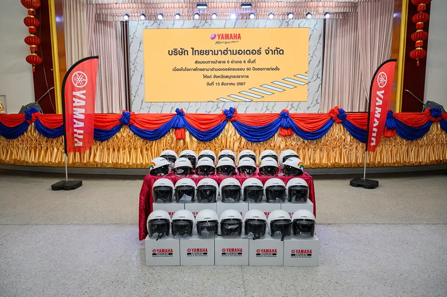 นายพงศธร เอื้อมงคลชัย ประธานกรรมการบริหาร นางสาวบัวทิพย์ จันทร์ดำรงกุล ผู้จัดการใหญ่ด้านการเงิน บริษัท ไทยยามาฮ่ามอเตอร์ จำกัด ถ่ายภาพร่วมกับนายศุภมิตร ชิณศรี ผู้ว่าราชการจังหวัดสมุทรปราการ พร้อมด้วย พ.ต.ท.พิทยา สุรินต๊ะ รองผู้กำกับการ จราจร สภ.สมุทรปราการ และคณะผู้บริหารโรงเรียนป้วยฮั้ว ร่วมกันรับมอบในการส่งมอบหมวกกันน็อกเด็กจำนวน 100 ใบ และหมวกกันน็อกขนาดมาตรฐานจำนวน 300 ใบ รวมมูลค่าทั้งสิ้นกว่า 245,000 บาท เนื่องในโอกาสฉลองครบรอบ 60 ปี ของบริษัท ไทยยามาฮ่ามอเตอร์ จำกัด จึงได้จัดทำโครงการผลิตหมวกนิรภัยขนาดเล็กที่ได้มาตรฐานผลิตภัณฑ์ อุตสาหกรรม (มอก.) เพื่อสังคม และนำส่งมอบทั่วประเทศมากกว่า 7,700 ใบ พร้อมการส่งมอบหมวกกันน็อกขนาดมาตรฐานเพื่อแจกจ่ายใหักับประชาชนในท้องที่ จ.สมุทรปราการ เนื่องในโอกาสปีใหม่ อีกด้วย