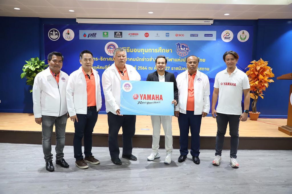 นายปิยะพงษ์ หวังใจสุข ผู้จัดการอาวุโส แผนกประชาสัมพันธ์ บริษัท ไทยยามาฮ่ามอเตอร์ จำกัด ขึ้นมอบเงินสนับสนุนให้กับสมาคมนักข่าวช่างภาพกีฬาแห่งประเทศไทย โดยมี นายไพฑูร ชุติมากรกุล นายกสมาคมนักข่าวช่างภาพกีฬาแห่งประเทศไทย พร้อมด้วยคณะกรรมการสมาคมฯ เป็นผู้รับมอบ โดยไทยยามาฮ่าได้ให้การสนับสนุนเงินเพื่อเป็นทุนการศึกษาแก่บุตร-ธิดา ของผู้สื่อข่าวในสมาคมนักข่าวช่างภาพกีฬาแห่งประเทศไทยมาอย่างต่อเนื่อง