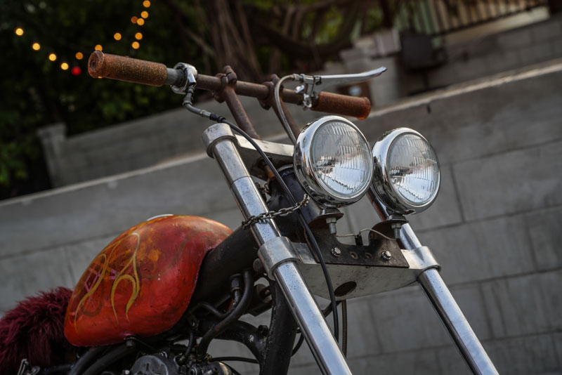 อ้างอิงจากกลุ่มมอเตอร์ไซค์ที่มีชื่อว่า El Forastero MC ซึ่งมีแนวทางจากคนในกลุ่มชื่อ Harlan ‘Tiny’ Brower เริ่มต้นด้วยชุดเฟรมเดิมๆ ไม่มีการตัดต่อแต่อย่างใด ผสมผสานด้วยอะไหล่แบบย้อนยุค ชุดหน้าใช้เป็นแผงคอหน้ากว้างเจ้าของรถเขียนแบบและสั่งเลเซอร์ขึ้นโดยได้รับการช่วยเหลือจากพี่ทอยเจ้าสำนัก “Thoy Cycles” แผงคอนี้กว้างมากกว่า Wide Glide ของ HD และตัวแผงคอก็สามารถใช้กระบอกโช้ค 35มม. ของเดิมติดจากตัวรถได้เลย