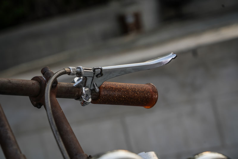 ส่วนดุมที่ใช้ก็เป็นดุมดิสก์ปีเก่าของโรงงานยามาฮ่า แค่จัดการเอาจานดิสก์ออกแค่นี้โล่งเหมือนที่เห็น มาพร้อมกับไฟหน้า Twin Eyes เป็นไฟ Fog Light of Ford Chevy สุดเนียน ขนาด 4.5 นิ้ว เจ้าของรถสั่งซื้อมาจาก ebayให้อารมณ์เหมือนดวงตาของรถ ทำให้รู้สึกถึงความมีชีวิตชีวาของรถ ด้านบนมาพร้อมตุ๊กตาแฮนด์ Stubby Risersสูง 6 นิ้ว ประกับแฮนด์ก้านคลัทช์สไตล์อังกฤษ ล้อหน้า-หลังเลือกใช้ล้อแบบรางน้ำ จากแบรนด์ Takasako