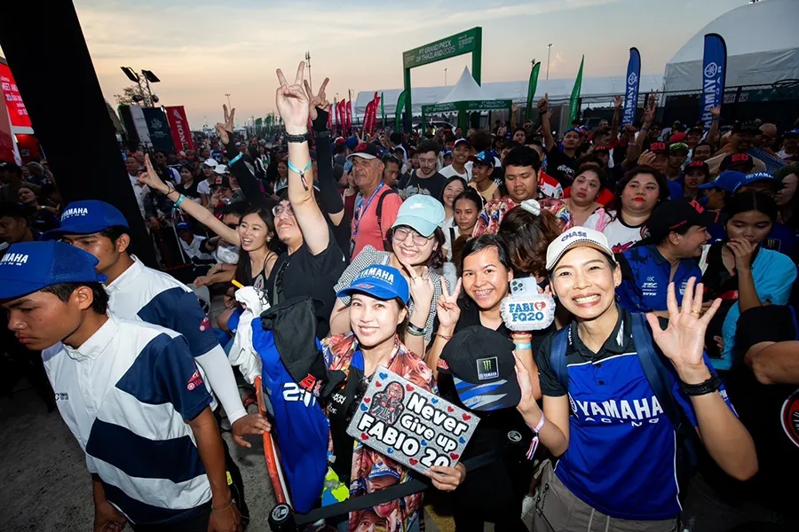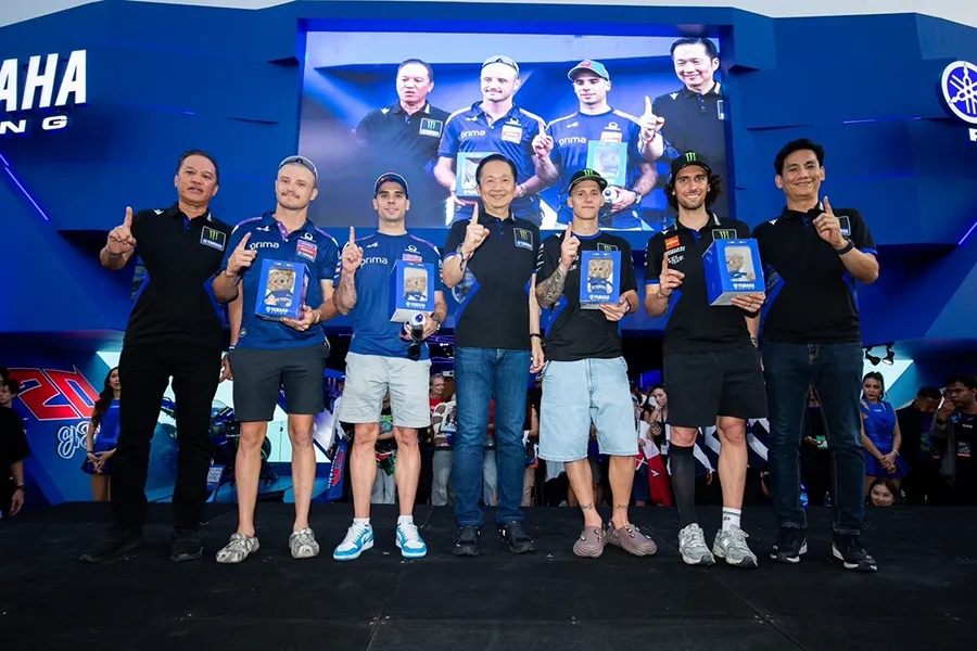 นายพงศธร เอื้อมงคลชัย ประธานกรรมการบริหาร นายภาณุพล กิตติคำรณ ผู้จัดการใหญ่ด้านการค้า นายอุกฤษณ์ ภาควิวรรธ รองผู้จัดการใหญ่ด้านวางแผนการค้า และการตลาด นายกัมพล พรสูงส่ง รองผู้จัดการใหญ่ด้านขาย บริการ และอะไหล่ บริษัท ไทยยามาฮ่ามอเตอร์ จำกัด ถ่ายภาพร่วมกับ 4 นักแข่งระดับโลกของทีมยามาฮ่า นำโดยแชมป์โลก 1 สมัย ฟาบิโอ กวาร์ตาราโร นักบิดชาวฝรั่งเศสเจ้าของรถแข่งหมายเลข 20 พร้อมคู่หูชาวสเปน อเล็กซ์ รินส์ เจ้าของรถแข่งหมายเลข 42 จากทีม มอนสเตอร์ อีเนอร์จี้ ยามาฮ่า โมโตจีพี และแจ็ค มิลเลอร์ นักแข่งชาวออสเตรเลียหมายเลข 43 จากทีม Prima Pramac Yamaha MotoGP ที่สนามนี้สามารถคว้าอันดับการออกสตาร์ตได้ในอันดับที่ 4 และทีมเมท มิเกล โอลิเวียร่า นักแข่งชาวโปรตุกีส เจ้าของรถแข่งหมายเลข 88 ในการจัดกิจกรรม “มีทแอนด์กรี๊ด กับ 4 นักแข่งชั้นนำของโลก”