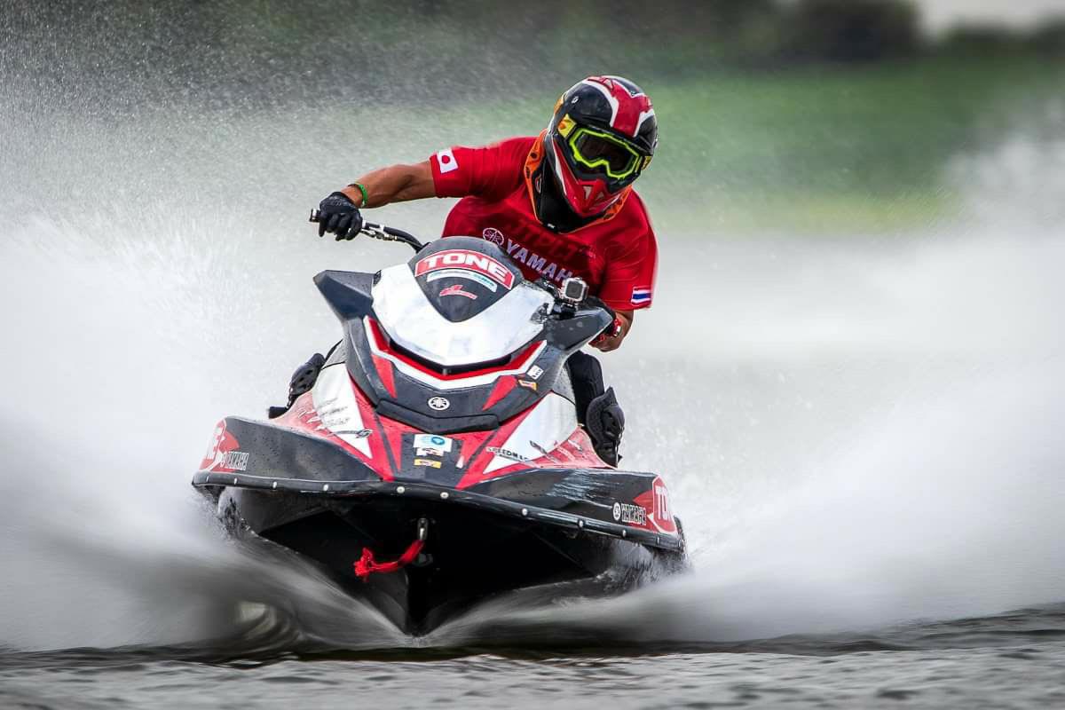 ณัฐกร ภูภัคดี #7 นักแข่งในสังกัด เจตรินทีม บาย ยามาฮ่า ที่สามารถคว้า “แชมป์ประจำปี” รุ่น Pro-Am Ski 2 Stocke Stock มาครองได้สำเร็จด้วยเรือ Super Jet