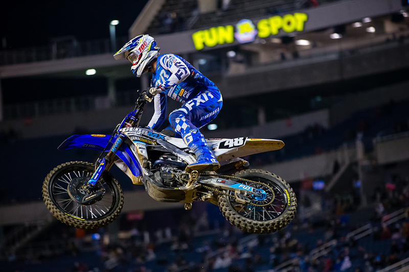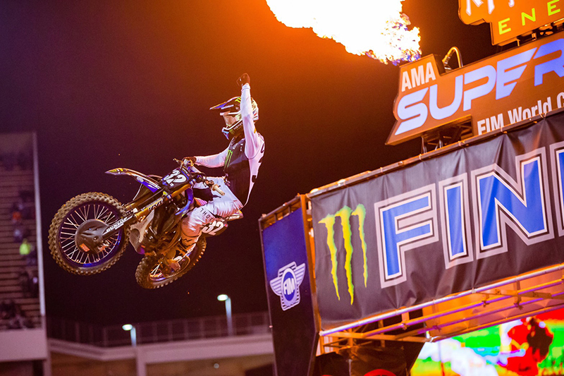 จัสติน คูเปอร์ #32 ดาวบิดแคลิฟอร์เนียน จาก มอนสเตอร์ เอเนอร์จี้ สตาร์ ยามาฮ่า เรซซิ่ง ควบรถแข่งยามาฮ่า YZ250F ซิวแชมป์รุ่น 250SX จากการชิงชัยในสนามแรก ศึกเอเอ็มเอ ซูเปอร์ครอส ฝั่งตะวันตก ที่ ออร์แลนโด้ ขณะที่ การ์เรตต์ มาร์ชแบงค์ส เพื่อนร่วมค่ายตามขึ้นโพเดี้ยมอันดับ 3