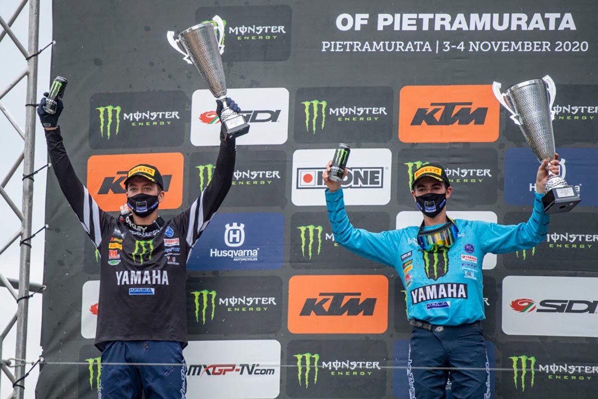 การชิงชัยในสนามที่ 17 ศึกเอฟไอเอ็ม โมโตครอส เวิลด์ แชมเปี้ยนชิพ 2020 ดวลความเร็วที่ ครอสโซโดรม ซิคลามิโน่ พีตรามูราต้า เมืองเทรนโต้ ประเทศอิตาลี แทร็กฮาร์ด แพ็ค ในรายการเอ็มเอ็กซ์จีพี ออฟ พีตรามูราต้า